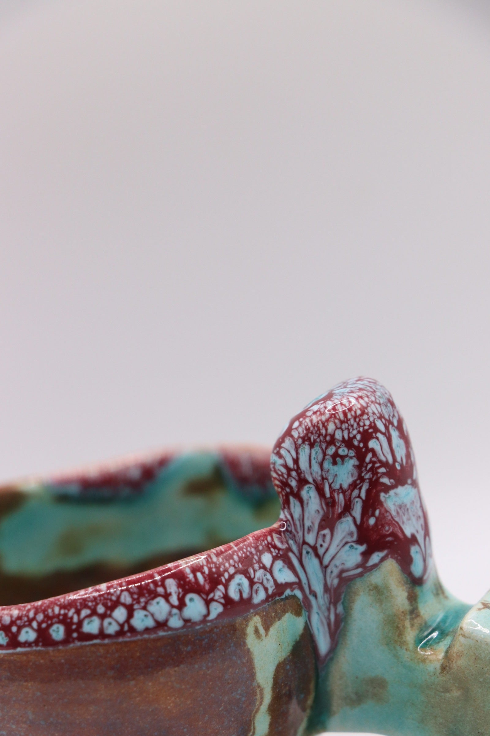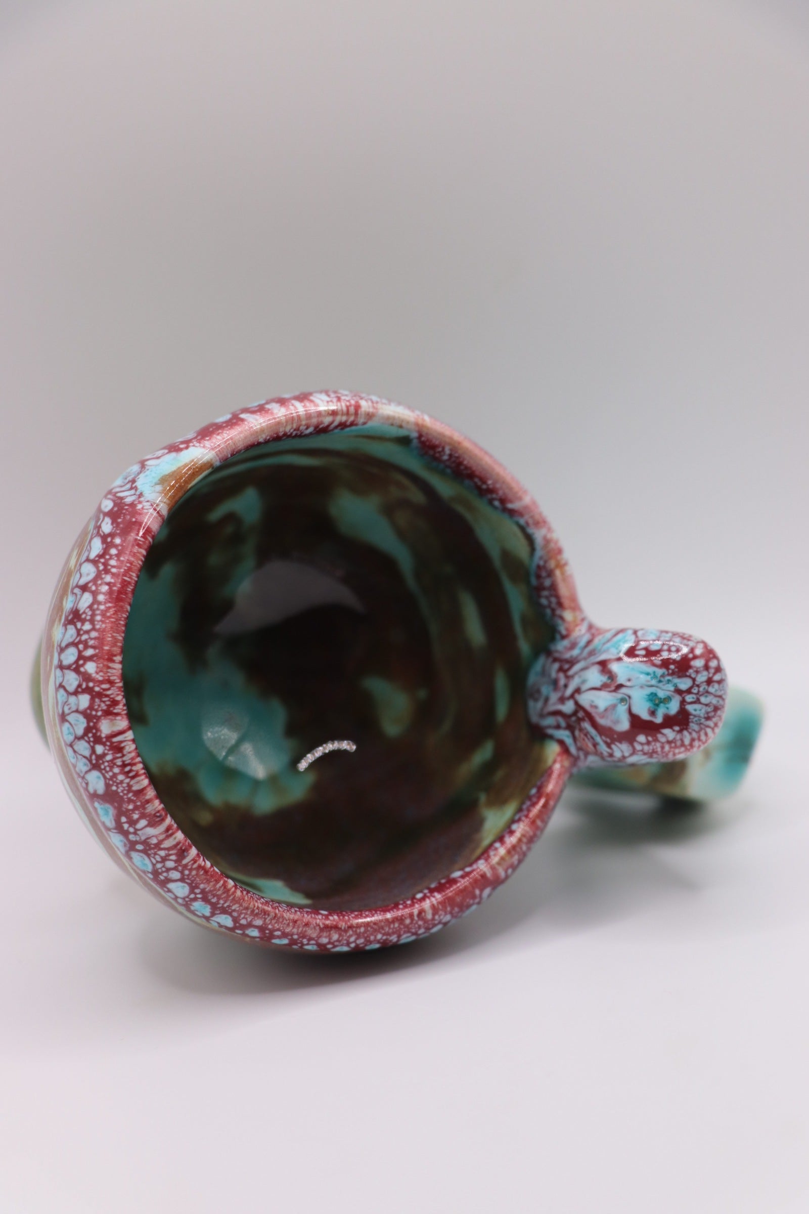 La smaltatura è frutto di una scoperta in cui unendo una cristallina verde semi-trasparente unita a smalti bianchi e rossi/magenta creava questo effetto meraviglioso.