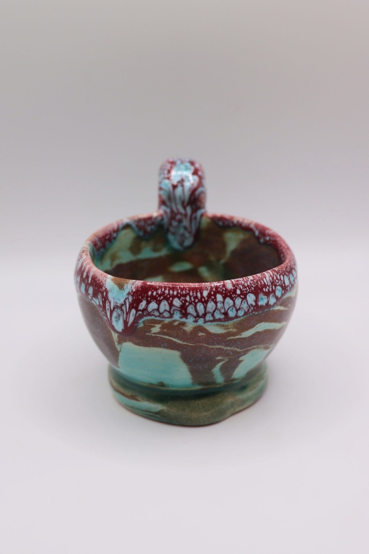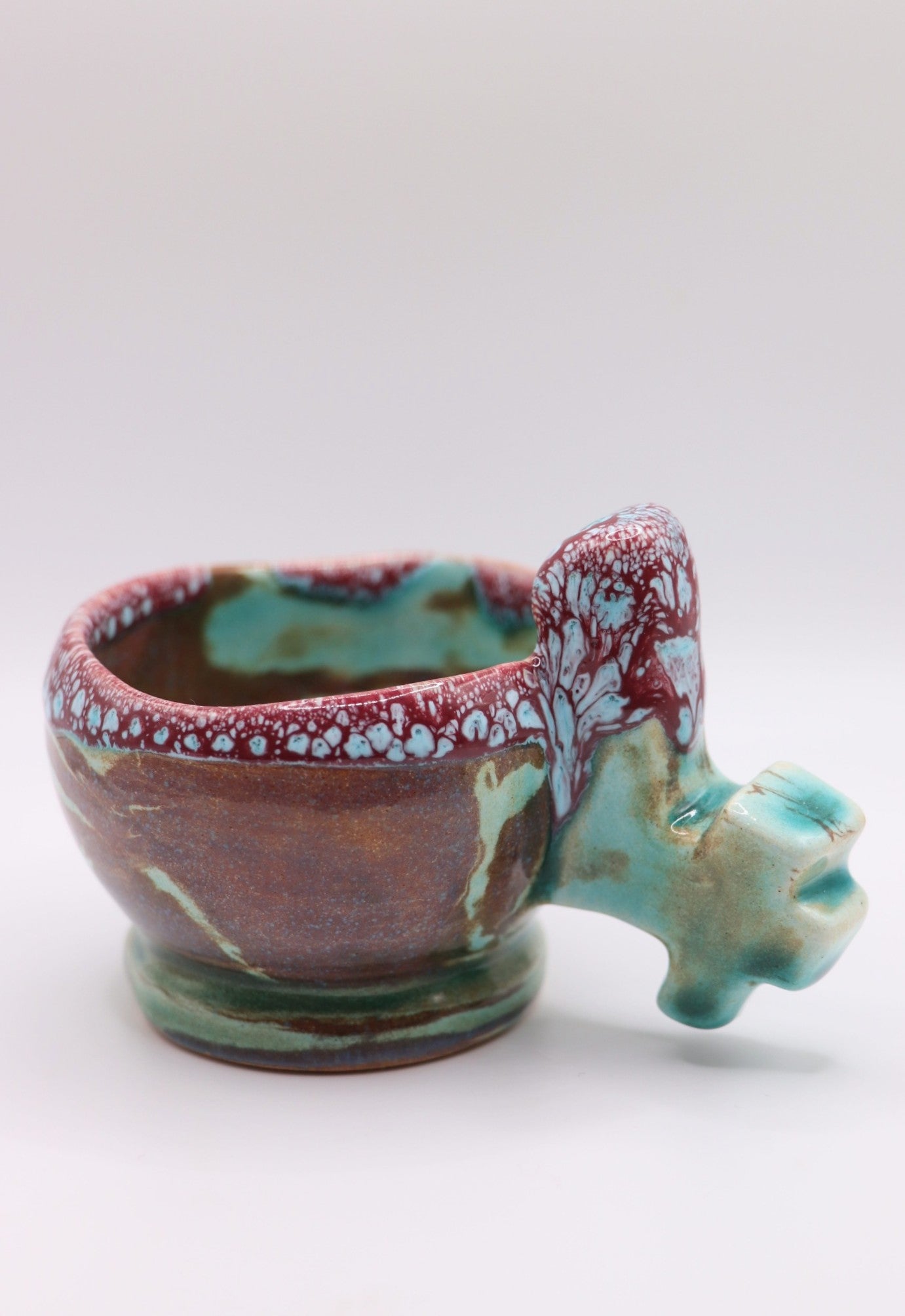Realizzata con tecniche artigianali, ogni tazzina è unica, con sfumature, forme e dettagli che la rendono un piccolo pezzo d’arte contemporanea. Perfetta come oggetto da collezione, come tazza per rituali personali o come dono significativo a chi apprezza design, simbolismo e artigianato consapevole.
